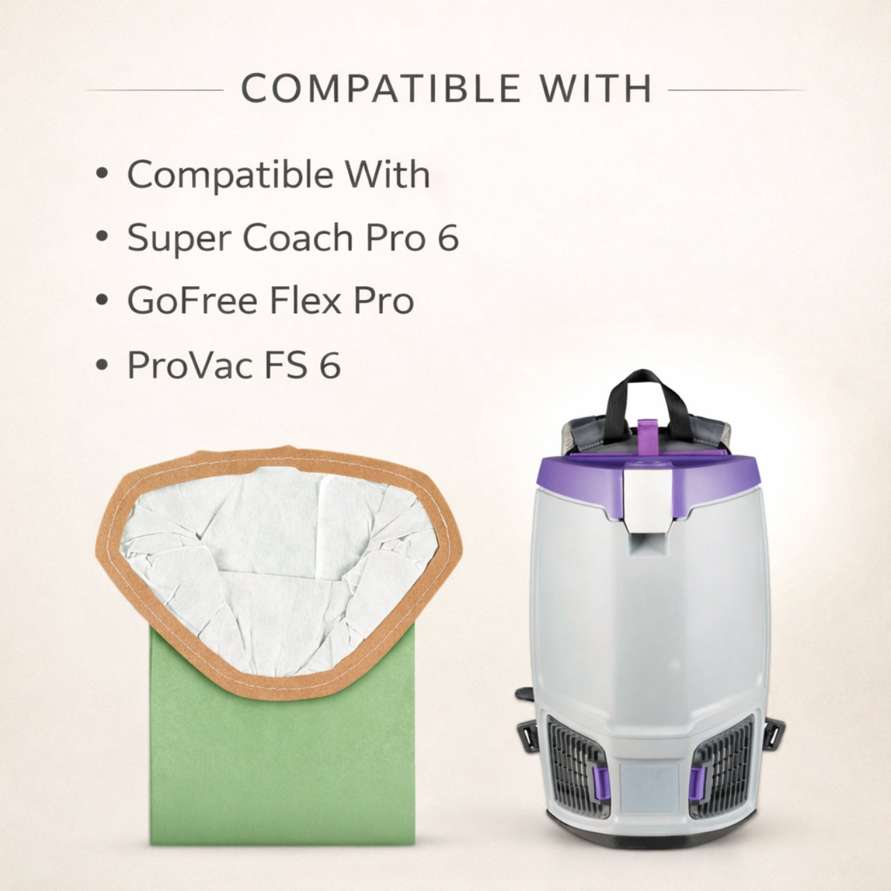 • • Designed for 6-Quart Backpack Vacuums Engineered to fit select ProTeam 6-Quart backpack vacuum models for proper sealing and performance.