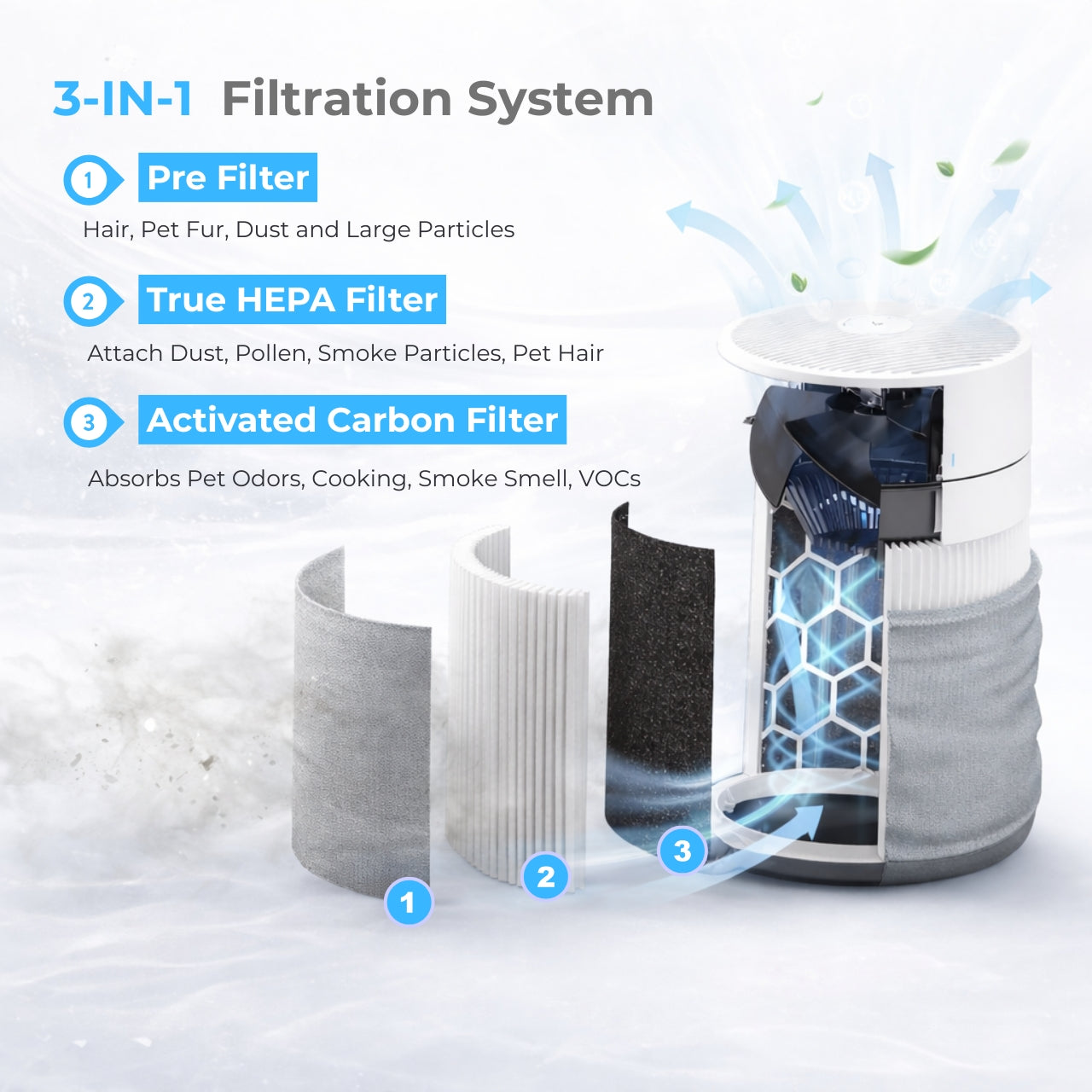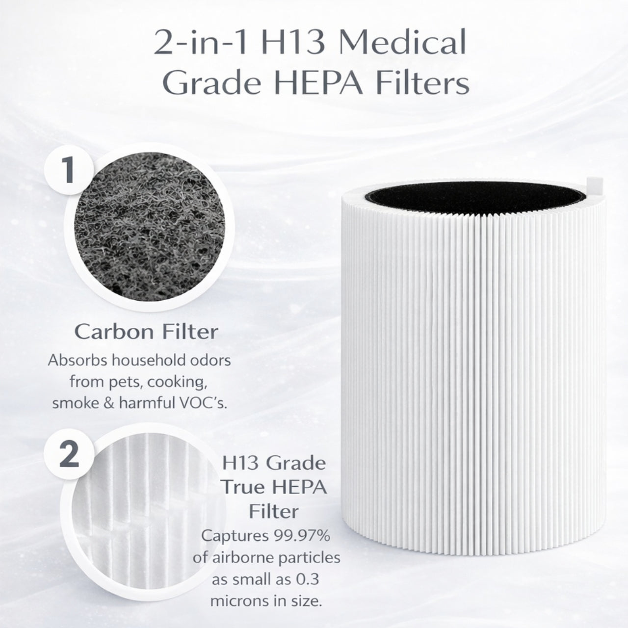 Activated Carbon Layer – Helps reduce common household odors and airborne impurities.