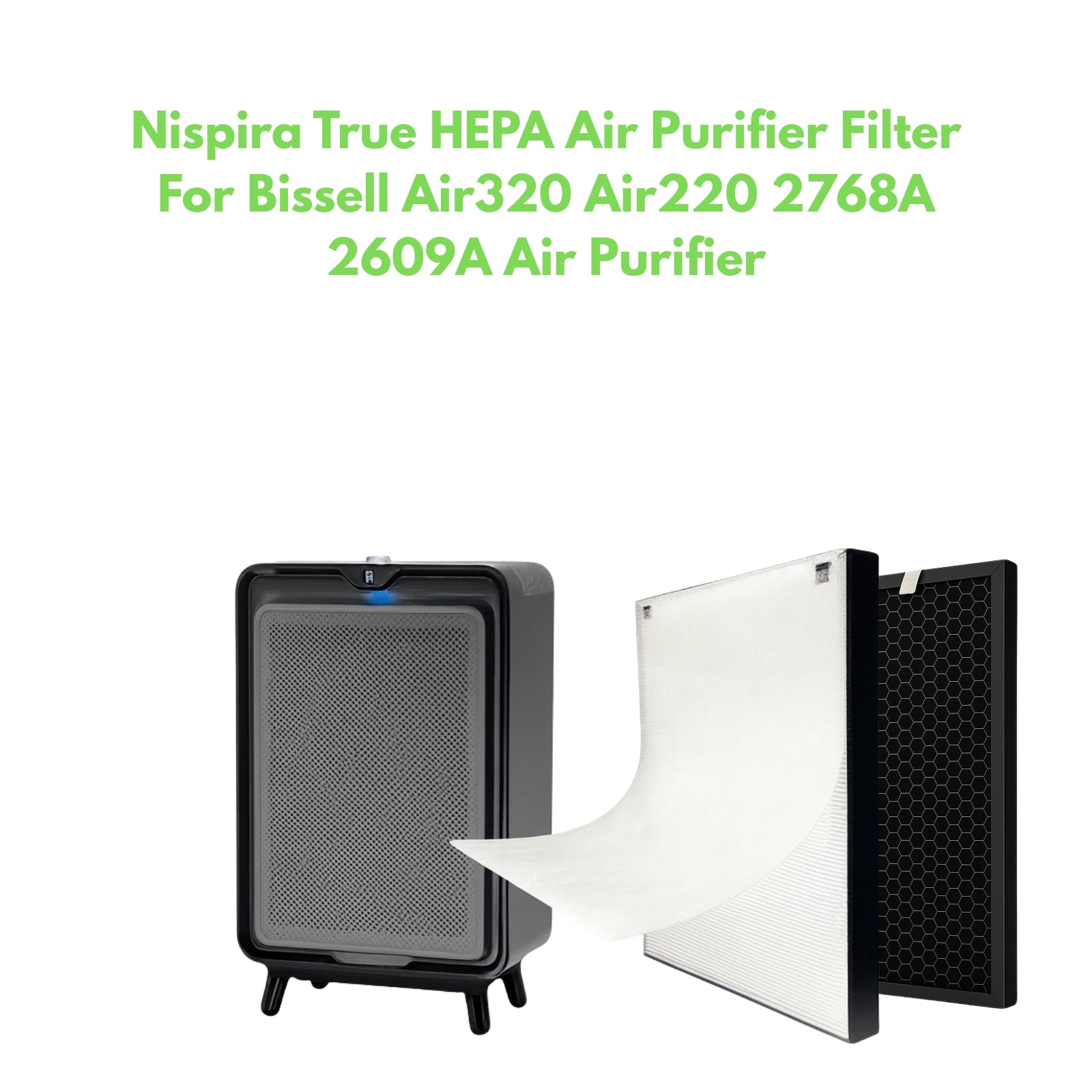 Nispira True HEPA Filter + Activated Carbon Pre Filter Compatible with Bissell Air220 Air320 Air Purifier 2609a 2768a Part 2677, 1 set